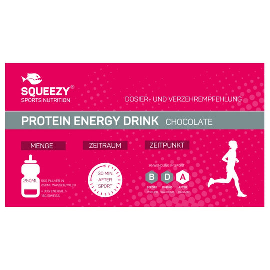 Squeezy Protein Energy Drink Schokolade ist ein Kohlenhydrat-Eiweiß-Gemisch mit Vitaminen und Mineralstoffen, mit Schokoladen-Geschmack. Konzipiert für die Unterstützung der Regeneration nach hoher sportlicher Belastung. Es verfügt über die ideale Mischung aus komplexen Proteinen (Eiweißen) und Kohlenhydraten,...Aktueller Preis € 18,49Regulärer Preis € 19,90Aktueller Preis € 18,49Regulärer Preis € 19,90 -