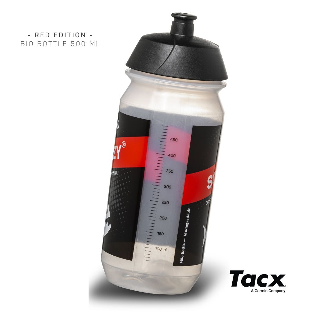 Squeezy Trinkflasche in Tacx Bio-Qualität. Mit seitlicher Mess-Skala und 500ml Fassungsvermögen.